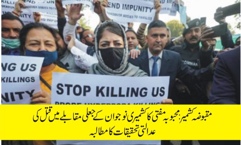 مقبوضہ کشمیر :محبوبہ مفتی کا کشمیری نوجوان کے جعلی مقابلے میں قتل کی عدالتی تحقیقات کا مطالبہ